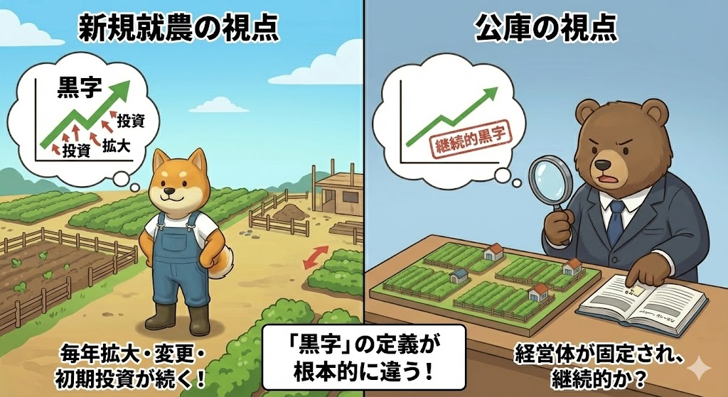 ■ 新規就農の“黒字”と、公庫が見る“黒字”は別物。