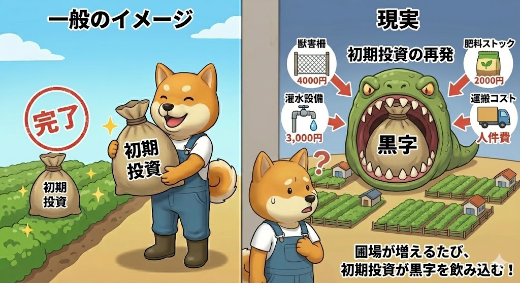 ■ 圃場を増やした瞬間、毎回“初期投資のやり直し”が始まる。