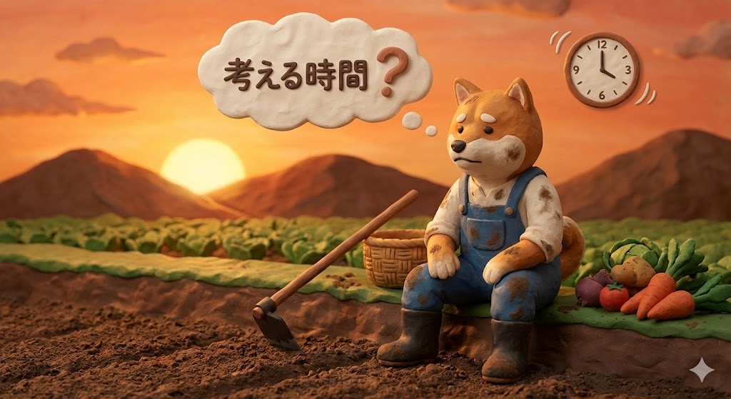 先輩農家さんと話したり、ニュースを見たりしてて、