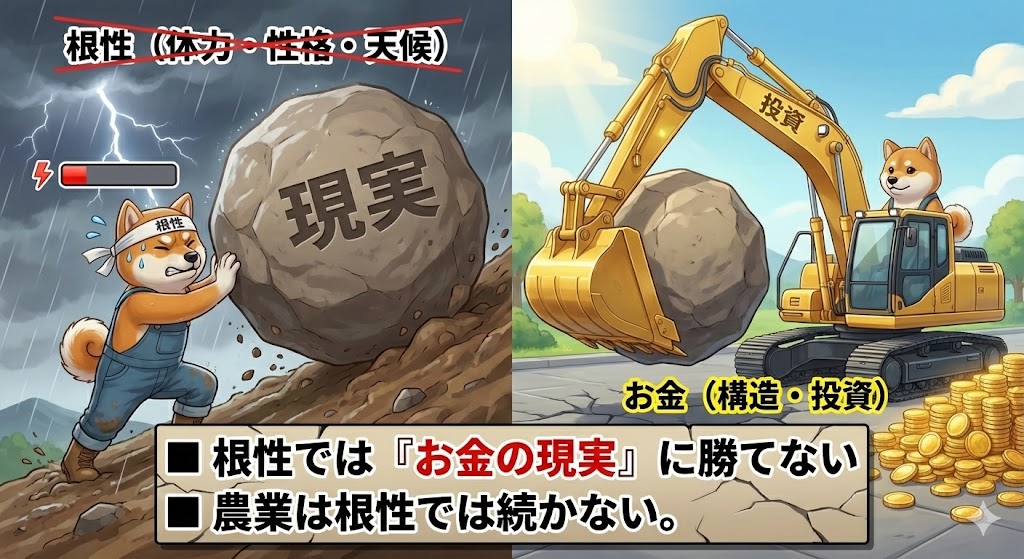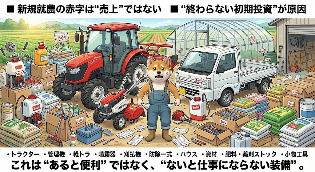 農業は根性では続きません。赤字の原因は売上不足ではなく“終わらない初期投資”。設備・資材・機械を揃える負担が数年間続きます。第3話では、投資構造と新規就農が脱落しやすい理由を現場目線で解説します。