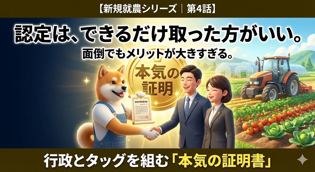 認定新規就農者制度は、面倒でも取っておくべき“最強の鍵”です。認定は信用のためではなく、行政支援・補助金・営農計画サポートなど、農業を続けるための制度にアクセスする入口。しかも就農から5年間だけの限定制度。この記事では、認定を取るメリットと現場で感じたリアルをまとめます。