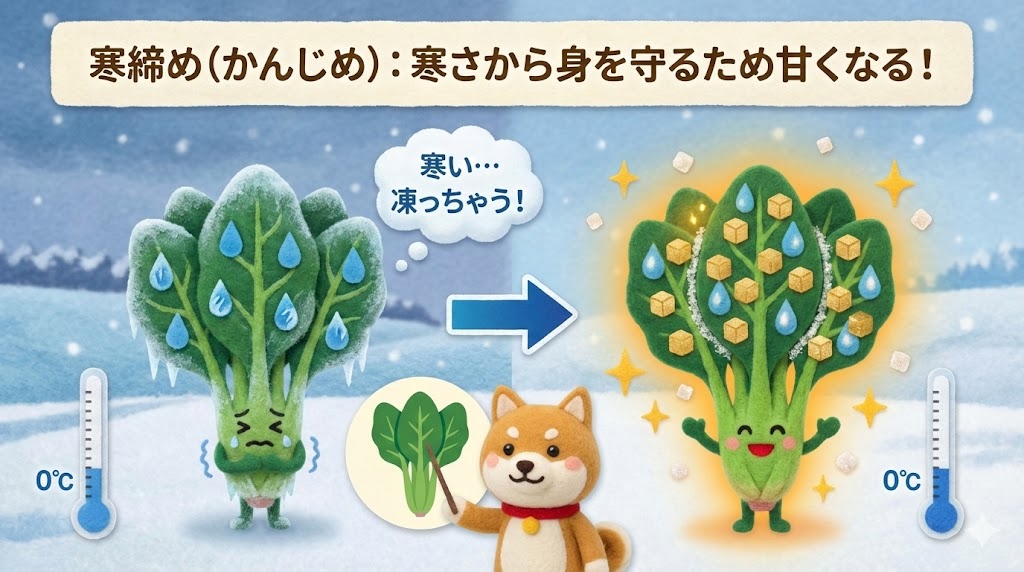 ① 結論:冬のほうれん草は「自分を守るため」に甘くなる(寒締め)