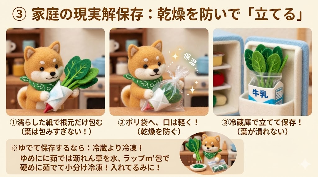 ③ 家庭の現実解保存:乾燥を防いで「立てる」