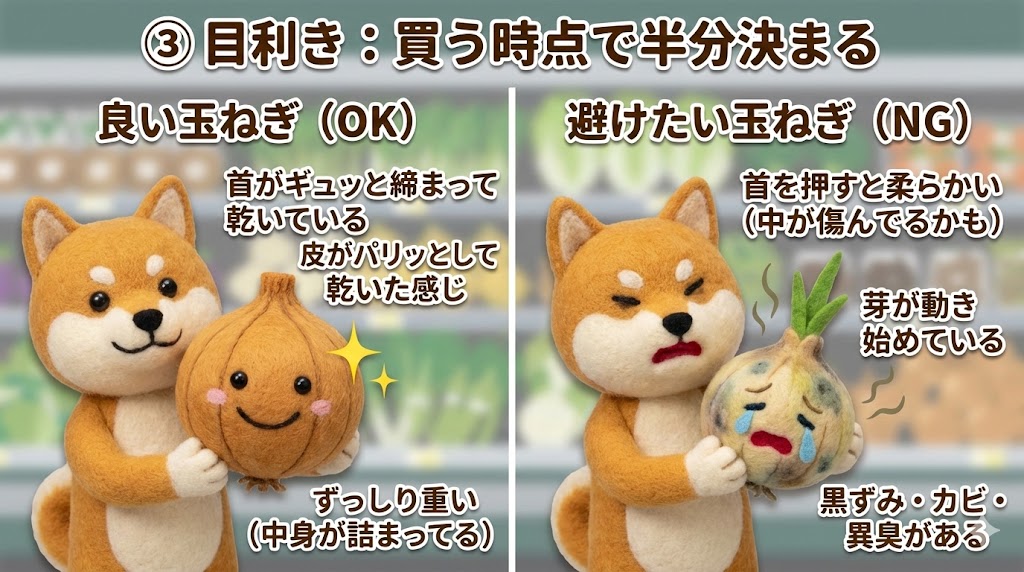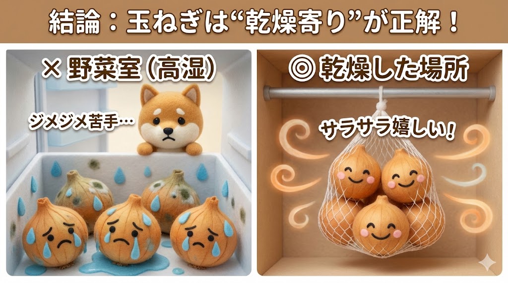 ① 結論:玉ねぎは“乾燥寄り”が正解(根菜なのに例外)